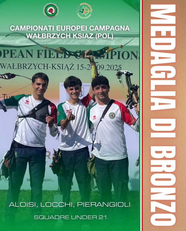 Nello scorso fine settimana, Giulio ha partecipato con la nazionale italiana ai Campionati Europei Campagna in Polonia. Locchi, assieme a Fabrizio Aloisi e Lorenzo Pierangioli, ha vinto la medaglia di bronzo nella categoria Junior a squadre, battendo la Slovenia 59-52. Gli avversari si portano sul 15-14 dopo le prime tre frecce, poi l’Italia accelera e non lascia scampo agli avversari vincendo tutti gli altri parziali (15-14, 17-13 e 13-10). Argento anche nel mixed team (maschile e femminile), dove Locchi, assieme a Linda Grezzani, si arrendono 69-65 in finale alla Svezia. Nel singolare, Giulio Locchi fa lo stesso bella figura e si ferma ai quarti di finale, perdendo di un punto (75-74) contro il lettone Gudovskis.