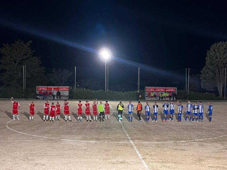 Partenza sprint dei ragazzi di Pompei, che si rendono pericolosi con una volée di Bazzucchini troppo centrale. Al 10’ il gol che sblocca la gara: imbucata di Sannipoli alle spalle della difesa per Pelati che con un bellissimo pallonetto fa 1-0. La reazione del Pierantonio arriva poco dopo con tre occasioni consecutive: un colpo di testa di poco fuori sugli sviluppi di un corner, un tiro da dentro l’area smorzato dopo un errore della difesa rigalese e un colpo di testa ravvicinato su cui Catasti si supera.