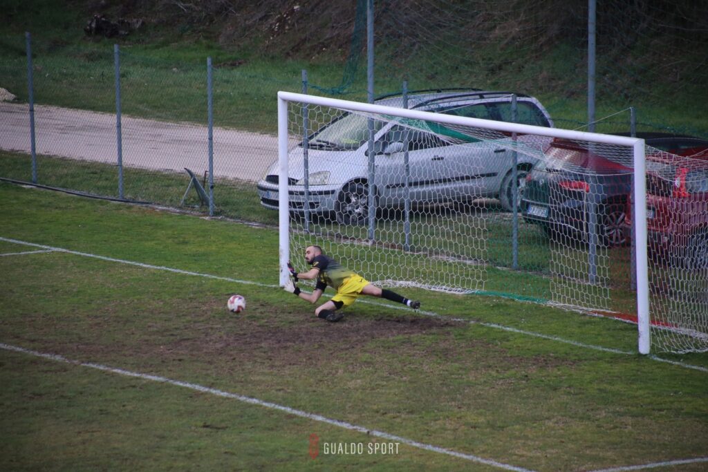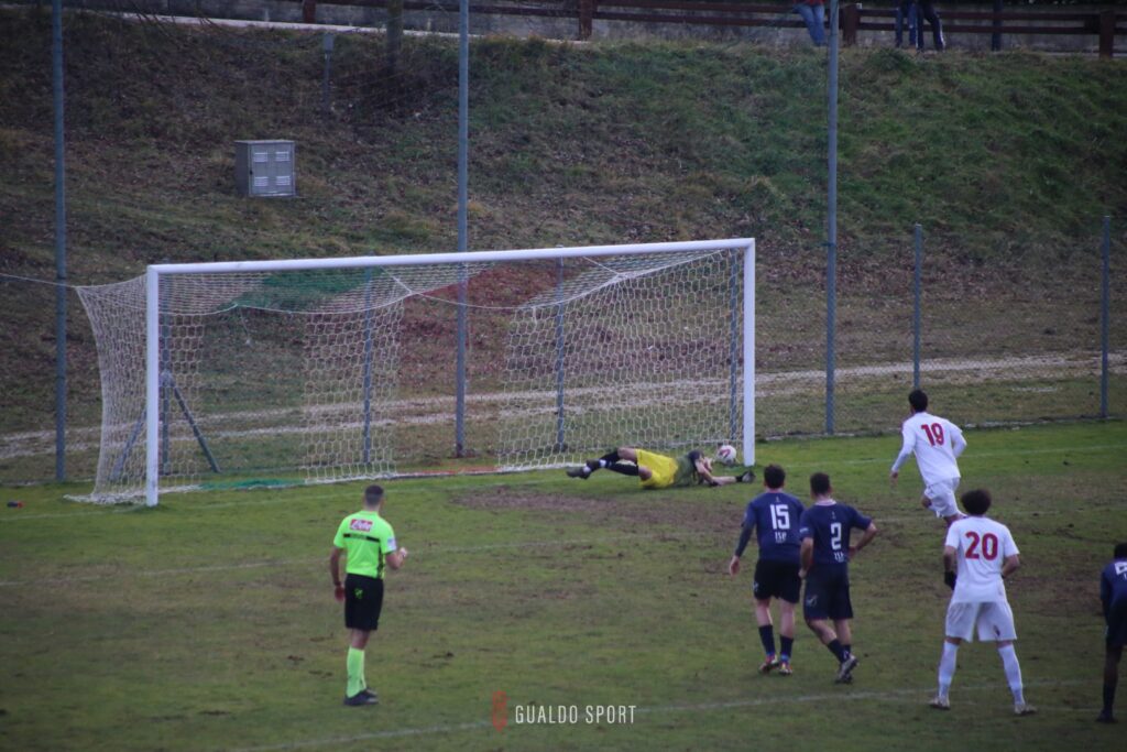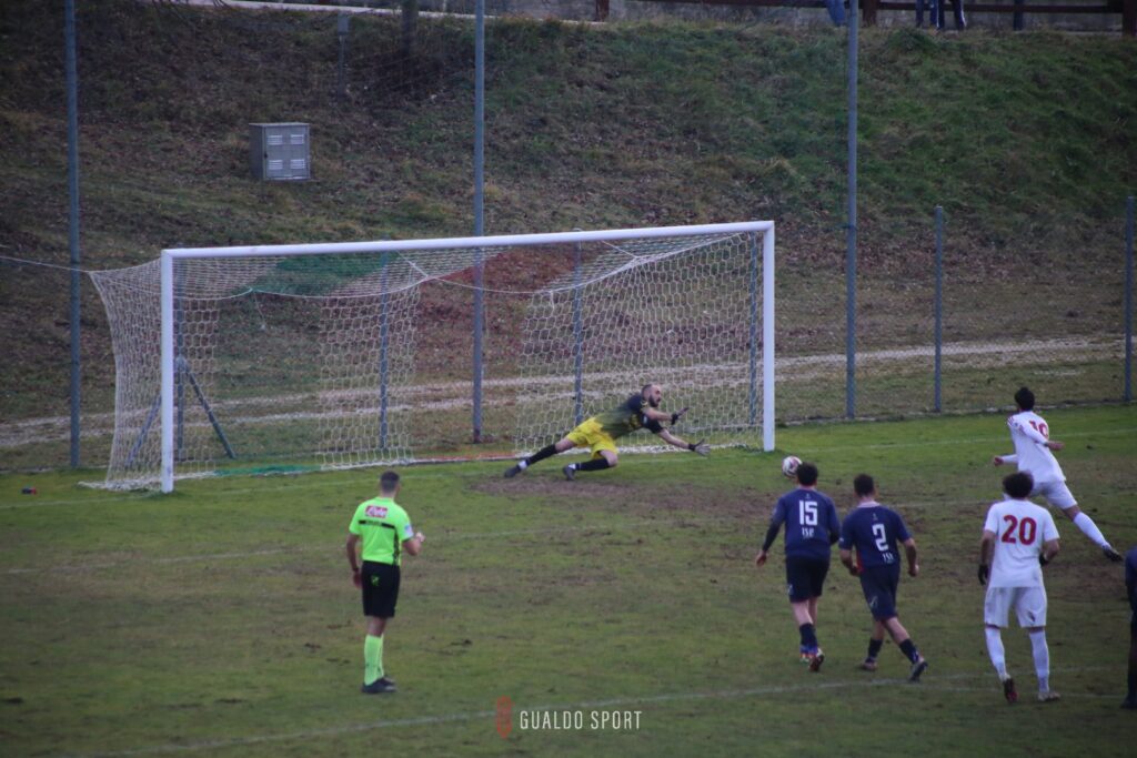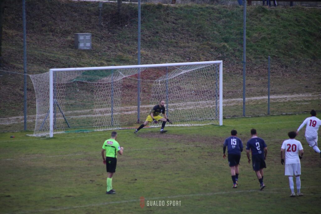 Al 16’ c’è un’altra occasione per i padroni di casa con Gaggiotti che si muove bene sulla linea di difesa gualdese e viene servito da Favorini, ma il tiro finisce alla sinistra del palo.