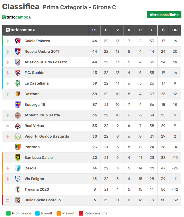 ATLETICO GUALDO FOSSATO: Mischianti; Fioriti, Tiny Ketchamo; A. Chioccolini, Loppi, Fumaria; Gasparri (31’pt Fioretti – 22’st Ferretti), D. Chioccolini, Gaggiotti, Bouaquil, Kromah (22’st Fagotti). A disp.: Castellani, Fagioli, Moscetti, Pierri, Pauselli, Favorini. All.: Belisario Favorini