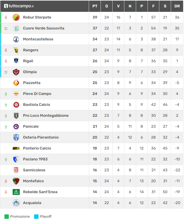 La gara resta equilibrata fino al fischio finale. Nel finale arrivano anche due espulsioni, una per Arsalan nel Rigali e una tra le fila della Montecastellese, ma il risultato non cambia. Con questa vittoria i padroni di casa consolidano il terzo posto in classifica.