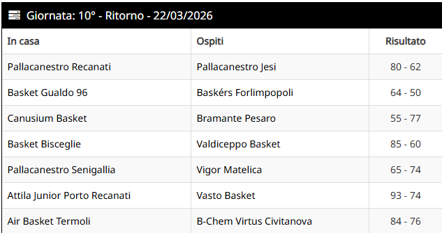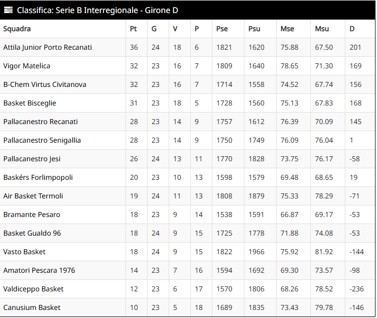 In classifica il Basket Gualdo sale a quota 18 punti, al decimo posto alla pari di Bramante Pesaro e Vasto. Termoli è nona con 1 punto di più, mentre Forlimpopoli ottava (e ultima dentro i playoff) è a 2 punti. Una classifica cortissima a cinque giornate dalla fine. E domenica prossima, nel catino del PalaLuzi, arriva Termoli per uno scontro diretto delicatissimo. Ma questo Basket Gualdo, che dovrà ancora fare a meno di Vukobrat, è in condizione psico-fisica ottimale.