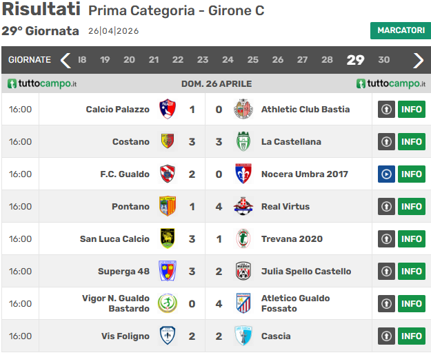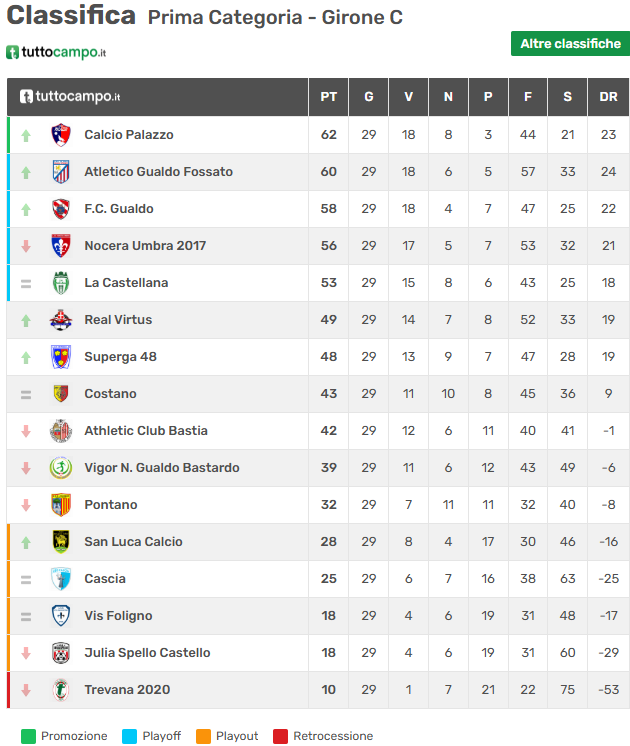 Finisce così 0-4. L’Atletico Gualdo Fossato rimane secondo a -2 dal Palazzo capolista e nell’ultimo turno affronterà in casa il San Luca, impegnato nella lotta salvezza. Un orecchio sarà sicuramente teso verso Castel Ritaldi, dove La Castellana ospita il Palazzo: i padroni di casa hanno bisogno di fare almeno un punto per essere certi di disputare i playoff. Il Palazzo, dal canto suo, deve portare a casa la vittoria per essere certo di vincere il campionato. Nel caso di arrivo a pari punti per il primo posto, si dovrebbe disputare uno spareggio. Si preannunciano 90 minuti finali molto caldi…